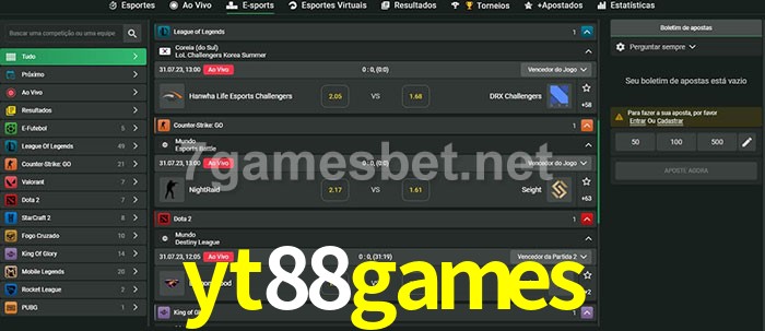 A aposta yt88games oferece aos jogadores a experiência mais conveniente de apostas em eSports!